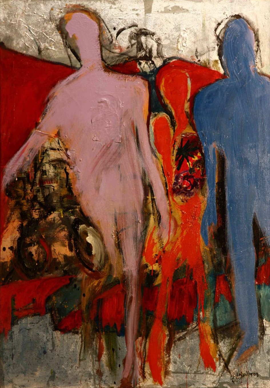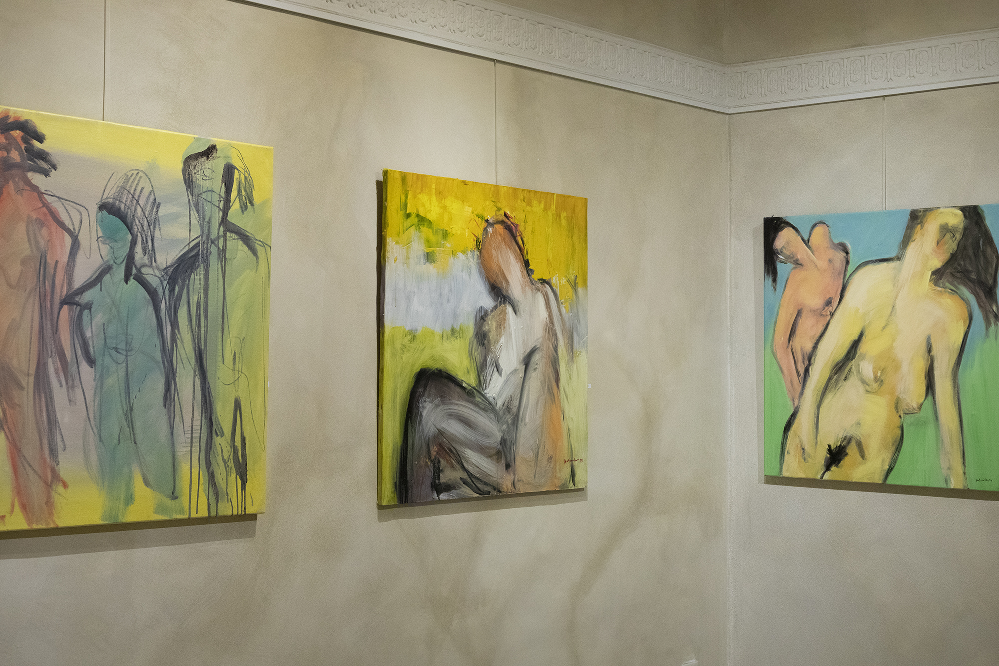 Τα γυμνά του αντιμετωπίζονται, στο έργο, ως πορτραίτα. Κάθε σώμα φέρει τα δικά του χαρακτηριστικά που μας μεταδίδουν τον αυτόνομο χαρακτήρα τους. Βρίσκονται μόνα ή σε ζευγάρια και αποτυπώνουν την ελευθερία αλλά και την ευαισθησία που διακρίνει τον καλλιτέχνη. Κάθε πινελιά, κάθε χειρονομία, συντελείται με λεπτομερή προσοχή και δυναμισμό, προσδίδοντας στα έργα μια ζωντανή διάσταση με κίνηση που προσδίδει μια αίσθηση τραχύτητας ή δόνησης. Η χειρονομία, εδώ, γίνεται γλώσσα και το σώμα γίνεται μέσο έκφρασης ενός παρατηρητή που αιχμαλωτίζει εικαστικές στιγμές.