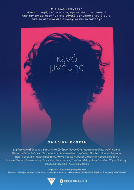 Ο μη κερδοσκοπικός διεθνής κοινωνικός φορέας Σύγχρονης Τέχνης και Πολιτισμού «ΚROMA», εγκαινίασε αυτό το Σάββατο 17 Φεβρουαρίου 2024, την ομαδική έκθεση 18 καλλιτεχνών «Κενό Μνήμης» στον εκθεσιακό χώρο του ΡΟΜΑΝΤΣΟ, το ιστορικό κτήριο του ομώνυμου περιοδικού (οδός Αναξαγόρα 3-5).