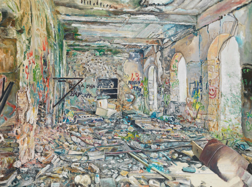 Η καλλιτέχνης ξαναγυρνά στο παλιό, οικογενειακό εργοστάσιο, που το θυμάται να σφύζει από ζωή και αντικρίζει τη φθορά, την παρακμή, την εγκατάλειψη. Διασώζει με τη φωτογραφική της μηχανή πολύτιμες εικόνες από το δυστοπικό, βανδαλισμένο τοπίο, μαζεύοντας με ευλάβεια σχέδια, χαρτιά, υφάσματα, δέρματα και ό,τι άλλο θα μπορούσε να διασωθεί.