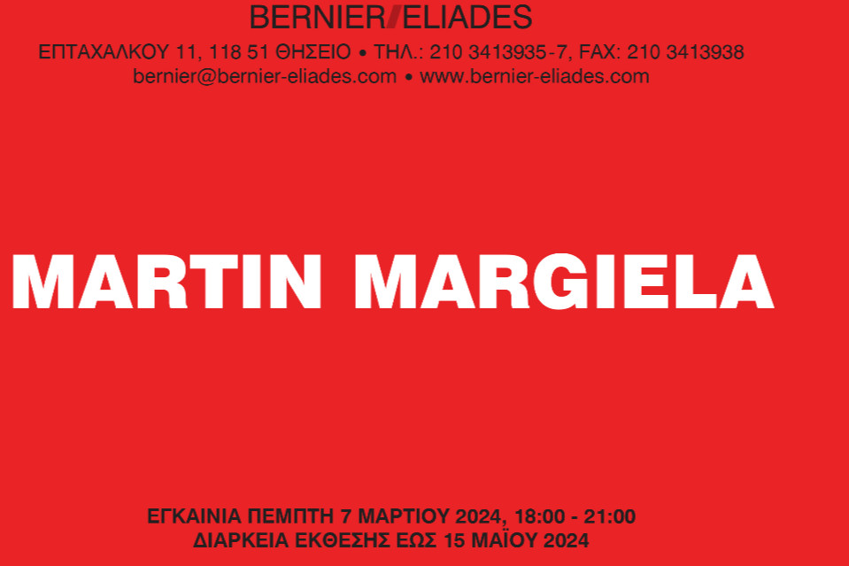Η γκαλερί Bernier/Eliades εγκαινιάζει τη διπλή ατομική έκθεση του Βέλγου εικαστικού Martin Margiela την Πέμπτη, 7 Μαρτίου στην Αθήνα και την Πέμπτη, 14 Μαρτίου στις Βρυξέλλες.